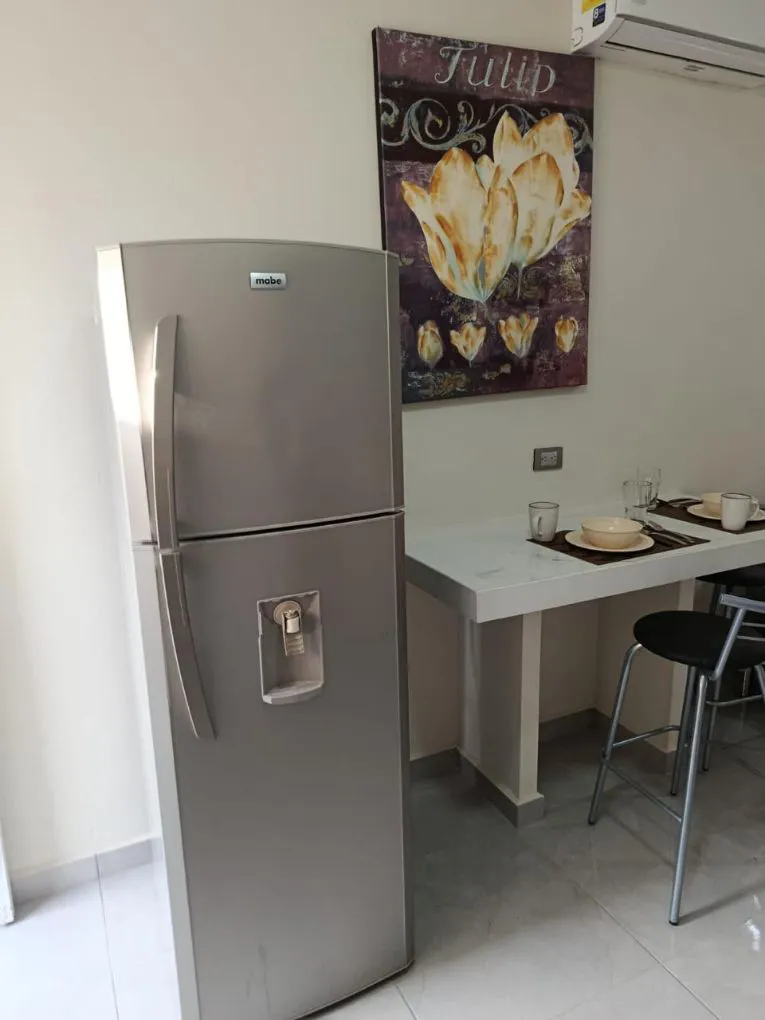 - Cocina equipada con parrilla de inducción, refrigerador, Horno de microondas.