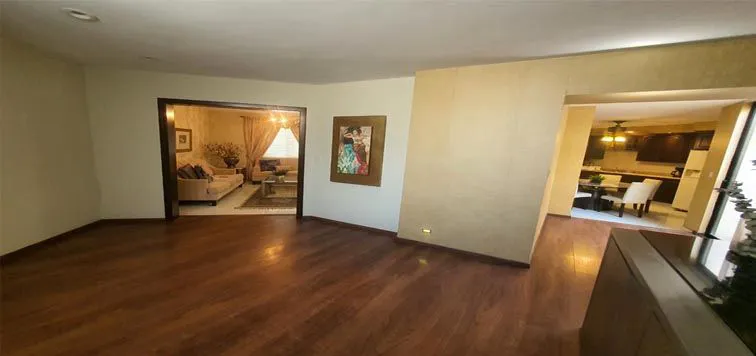 PLANTA BAJA: Sala, Comedor, Cocina Integral, Sala Familiar, Área de Bar, Medio Baño, Jardín Interior, pequeño Patio, Cochera (2) Autos, etc.